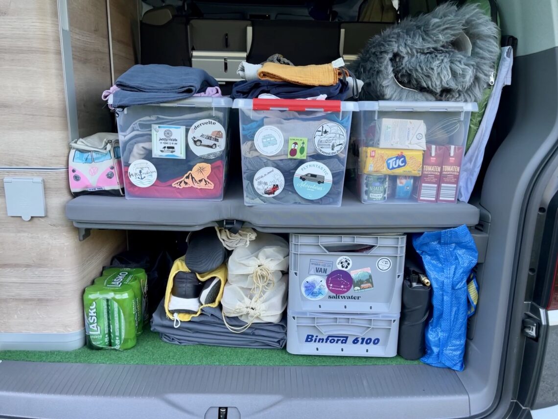 Für die Organisation im Kofferraum unseres Bullis nutzen wir überwiegend Euroboxen. Die sind leicht, preiswert und quasi unzerstörbar. Dazu lassen sie sich gut reinigen und stapeln. Wir haben meist Boxen mit den Maßen 30 x 40* und 40 x 60*…