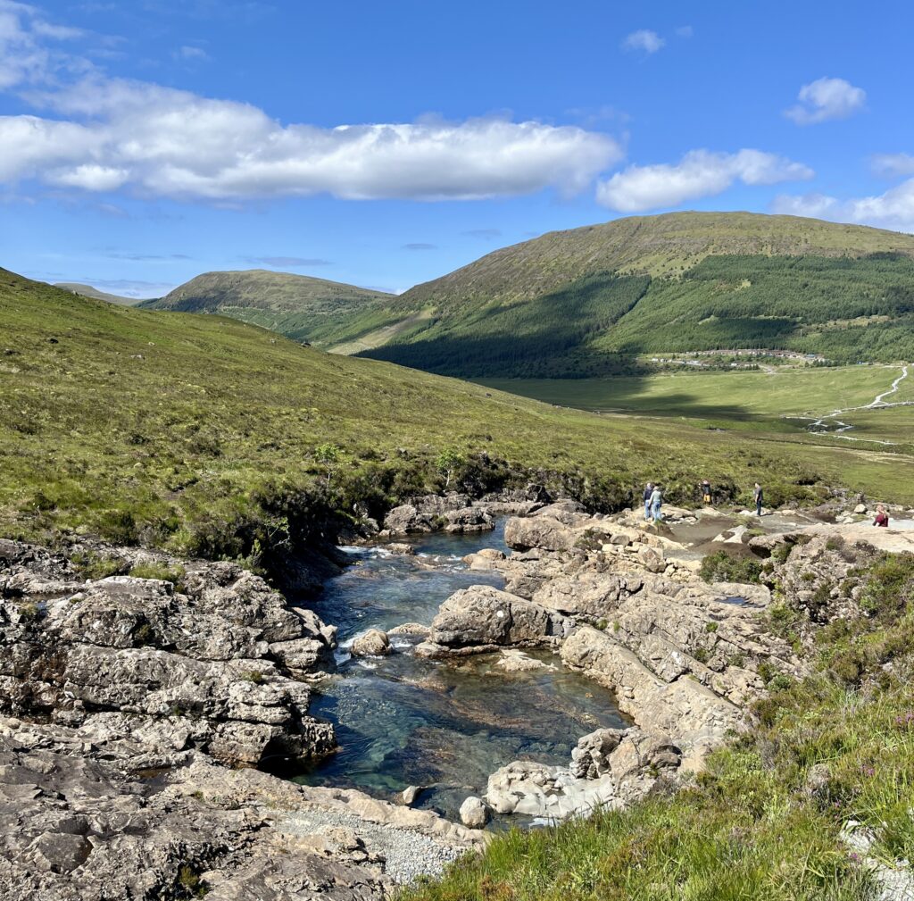 Der nächste Morgen begrüßt uns wieder mit Sonnenschein, so das wir auf der Rückfahrt noch an den Fairy Pools anhalten können. Wir unternehmen einen kleine Wanderung bis zu den Wasserfällen, bevor wir die Isle of Skye wieder verlassen und den Campingplatz Bunroy Park in der Nähe von Fort William ansteuern.