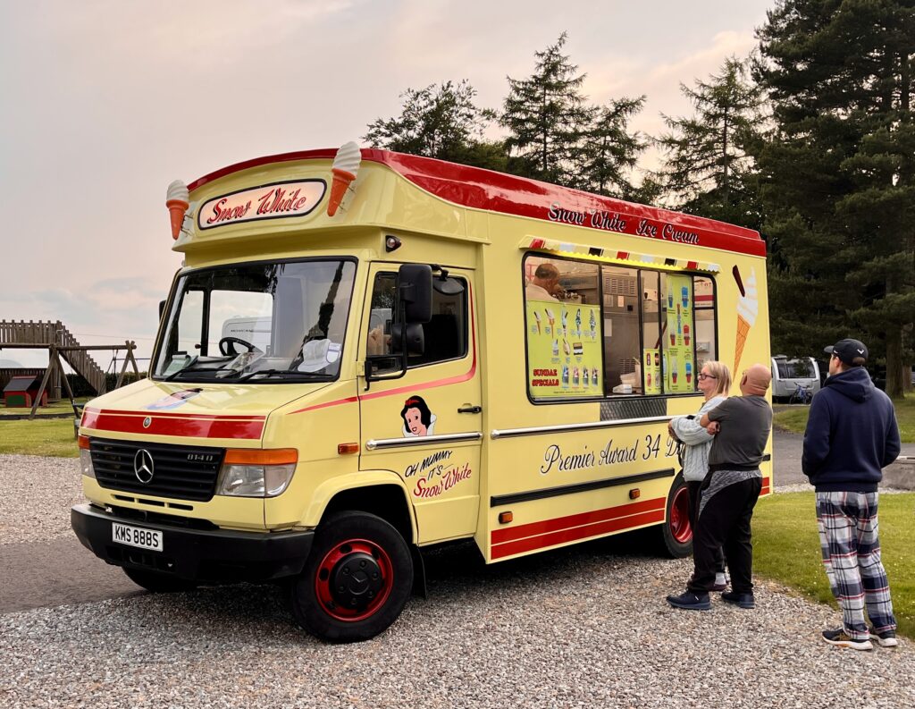 Auf dem Rückweg zum Campingplatz kaufen wir noch schnell ein paar Dinge ein. Und abends kommt sogar noch ein Eiswagen auf dem Campingplatz vorbei!