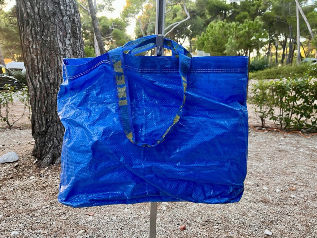 Der Klassiker, die blaue Tasche von IKEA. Gibt es inzwischen in verschiedenen Größen und Farben. Für uns unverzichtbar für dreckige Wäsche oder verschmutzte Wanderschuhe. In die kleinere Version passt sogar unser Kocher rein.
