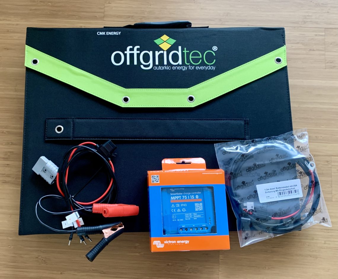Daher haben wir uns für eine 80 Watt-Solartasche von Offgridtec* entschieden. Ist zudem auch noch günstiger als eine fest montierte Anlage.